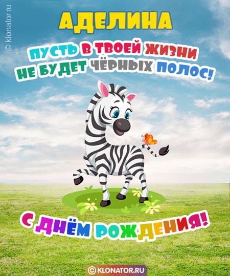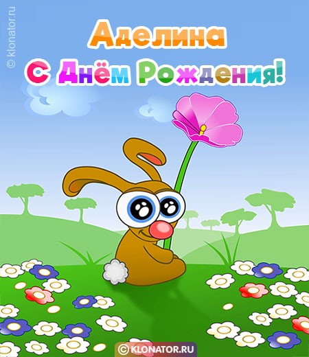Чудесные открытки и аудио поздравления для имени Аделина от веб-сайта Клонатор.ру можно молниеносно отправить на мобильный телефон в любой мессенджер: телеграмм, ватсап, вайбер. Имеются открытки для поздравления с Днём Рождения и Юбилеем: тортиками, мягкими игрушками, поздравлениями в прозе, розочками, с надписями, собачками, букетами цветов, для детей, воздушными шарами, смайликами, стихами, презентами, тюльпанами, от Ди Каприо, шоколадками, открытки от Путина, с цветами и конечно очень хорошенькие.