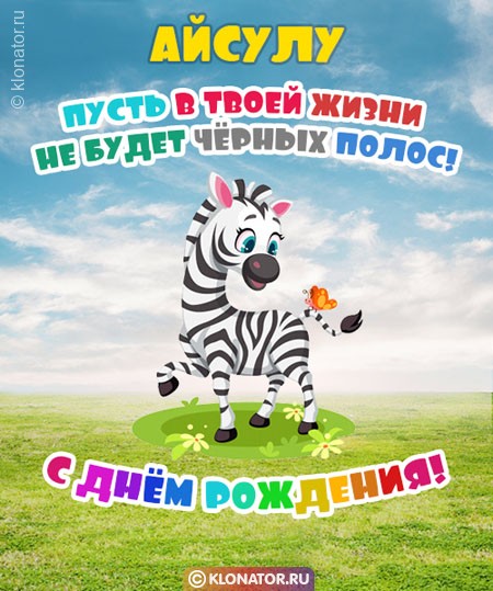 Замечательные открытки и аудио пожелания с именем Айсулу от медиасайта Klonator.ru можно по-быстрому послать на мобильный друзьям в: ватсап, телеграмм, вайбер. У нас есть праздничные картинки с Днём Рождения и Юбилеем: тортиками, картинки с президентом, с надписями, медвежатами, с цветами, шоколадками, зверюшками, мягкими игрушками, подарками, поздравлениями в прозе, воздушными шариками, цветочными букетами, котиками, розочками, от Ди Каприо, собаками, смайлами и просто очень качественные.