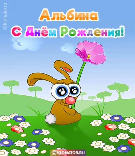 Обрадуйте подругу, или близкого человека в День Рождения с именем Альбина открыткой, или песенным поздравлением от всего сердца. Колоритные и веселенькие, сочные и авторские, на нашем ресурсе klonator.ru любой отыщет высококлассную открытку, которая подходит стилю жизни виновницы торжества. Когда абонент получит от вас картинку, это всенепременно подарит отличное ощущение праздника, как-никак это во все времена до слёз любо-дорого. Также любую картинку несложно скачать бесплатно и установить в форум, или сайт.