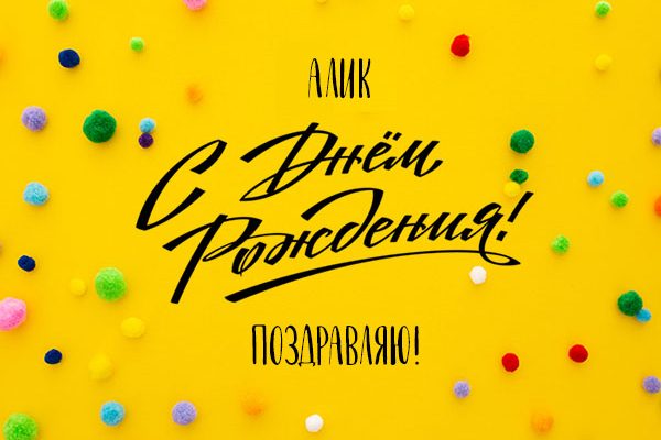 Поздравьте ваших друзей и родных в День Рождения при помощи красивых дизайнерских картинок с именем Алик от портала Клонатор.ру. Можно выбрать подошедшую из фантастической коллекции поздравительных картинок, подходящих под любое настроение и цвет. В прекрасном сборнике есть картинки для детей и взрослых с именем Алик. Любую картинку возможно скачать бесплатно на мобильный телефон и отправить имениннику, чтобы поздравить с юбилеем, или Днём Рождения.