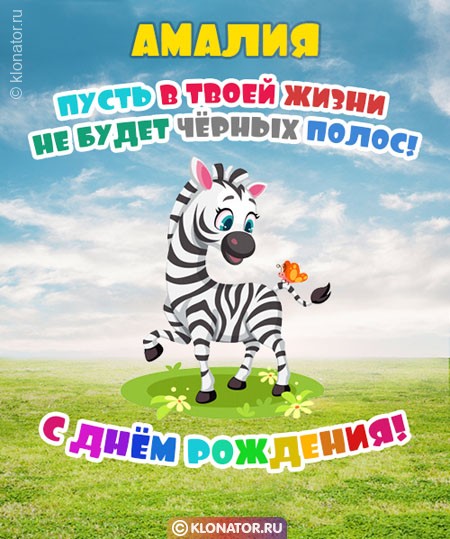 Скоро Днюха лучшей подруги? Подкрадывается Юбилей родного человека? Не беспокойтесь — на нашем сайте клонатор.ру вы обнаружите приветственные открытки с именем Амалия, которые придутся по вкусу любому имениннику. Наши трогательные авторские открытки можно отправить всем: воспитателю, дочке, любимой, любимой, куме, невестке, девочке, свекрови, директрисе, подружке, сестре, внучке, золовке, руководительнице, тёте, любовнице, племяннице, однокласснице, жене, приятельнице, крёстной, женщине, однокурснице, девушке, ребёнку. Отправьте их на телефон, или установите на форуме, или сайте — коды для вставки мы уже подготовили для вас.