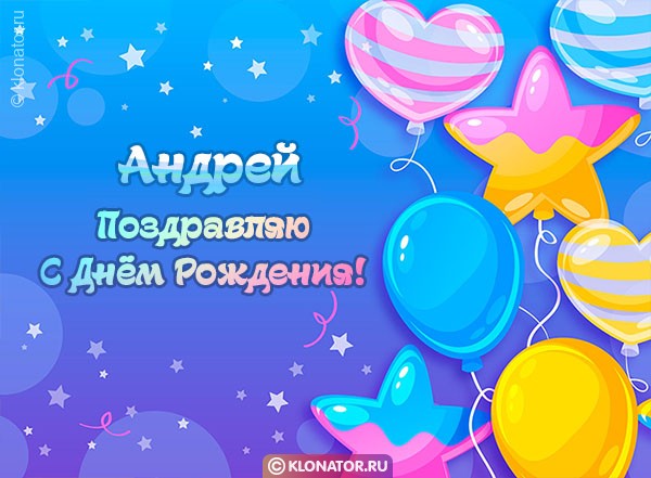 Обрадуйте ваших приятелей и родных в День Рождения с помощью красивых оригинальных картинок с именем Андрей от онлайн-портала «Клонатор.ру». Можно подобрать одну из огромной коллекции прикольных открыток, которые подойдут под любой вкус и стиль. В нашем сборнике есть картинки для взрослых и детей с именем Андрей. Каждую открытку разрешено скачать бесплатно на мобильный и послать имениннику, чтобы поздравить с юбилеем, или Днём Рождения.