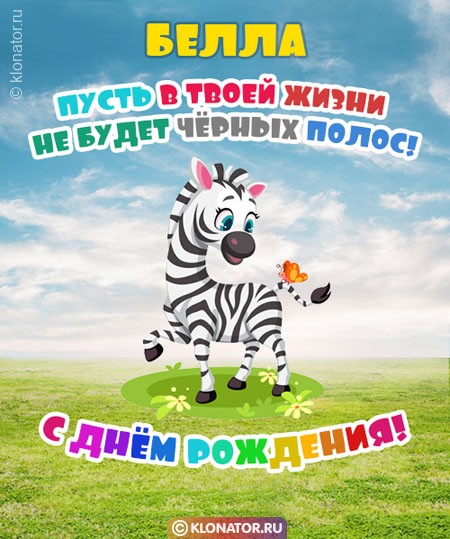 Развеселите женщину, или близкого человека в День Рождения с именем Белла картинкой, или музыкальным пожеланием от от всей души. С цветами и забавные, красивые и небанальные, на нашем портале клонатор.ру каждый подберёт блестящую открытку, достойную стилю виновницы праздника. Когда именинник примет поздравительную картинку, это наверняка подарит отличное чувство праздника, как ни говорите внимание во все времена до предела душевно. Также каждую картинку имеется возможность скачать бесплатно и вставить в форум, или сайт.