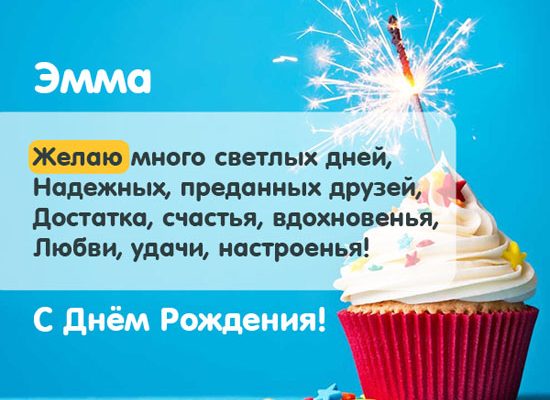 Скоро Днюха лучшей подруги? Подходит Юбилейная дата родного человека? Не волнуйтесь — у нас на сайте клонатор.ру вы найдете торжественные открытки с именем Эмма, которые прийдутся любому имениннику. Наши милые поздравительные картинки подойдут всем: тёще, сестре, крёстной, женщине, преподавателю, племяннице, невестке, боссу, девушке, воспитателю, любимой, приятельнице, коллеге, руководительнице, любимой, однокласснице, свекрови, золовке, девочке, лучшей подруге, однокурснице, знакомой, любовнице, ребёнку, жене. Пошлите их на мобильник, или сделайте пост на форуме, или сайте — коды для вставки мы уже подготовили для вас.