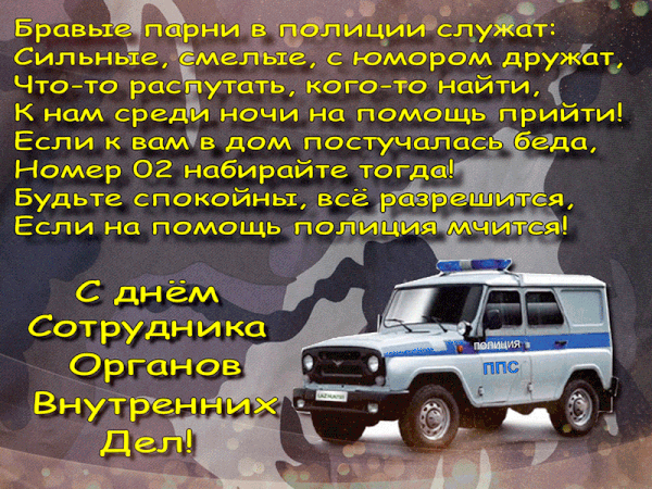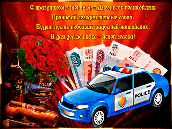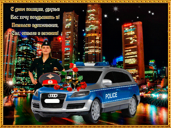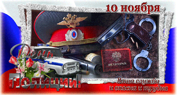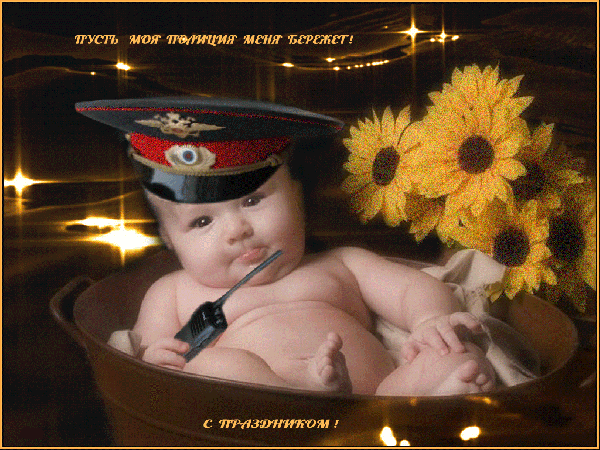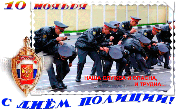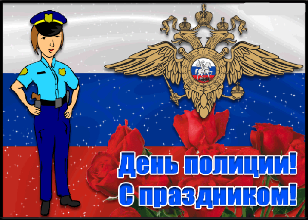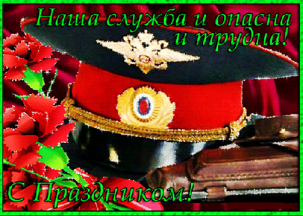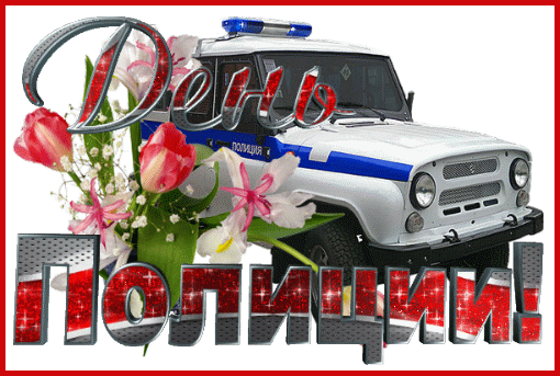 Интересные картинки с анимацией, миганием, мерцанием с пожеланиями и стихами для поздравления с Днём Полиции всех сотрудников ОВД! Все гифки с великолепными словами вы можете бесплатно скачать и отправить друзьям и близким на смартфоны, или в социальные сети! Непременно поднимайте настроение дорогим и близким людям! Поздравляем с праздничной датой День Полиции и всего Вам самого хорошего!!