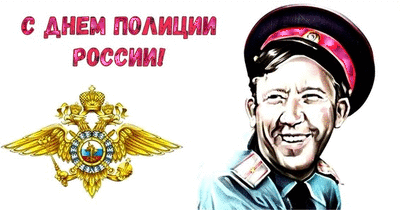 Разошлите дорогим людям самую душевную гифку с надписью, стихами или приветствием с Днём Полиции от всего сердца для всех сотрудников ОВД!