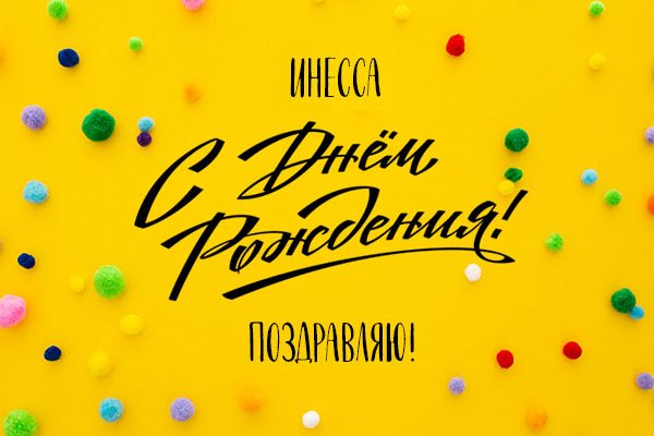 На днях День Рождения твоей подруги? Крадётся Юбилей родного человека? Не беспокойтесь — на нашем портале клонатор.ру вы обнаружите торжественные открытки с именем Инесса, которые приглянутся каждому. Наши оригинальные авторские открытки подойдут всем: коллеге, любимой, приятельнице, невестке, девушке, куме, сестрёнке, тёте, воспитательнице, директрисе, однокласснице, крёстной, племяннице, женщине, свекрови, любимой, ребёнку, девочке, руководительнице, однокурснице, жене, знакомой, внучке, любовнице, подруге. Скачайте их на телефон, или разместите на форуме, или сайте — коды для вставки мы уже подготовили для вас.