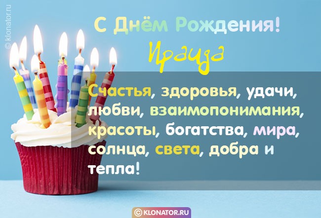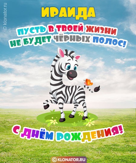 Скоро День Рождения твоей подруги? Подходит Юбилейная дата родного человека? Не переживайте — у нас на сайте клонатор.ру вы обнаружите приветственные открытки с именем Ираида, которые приглянутся каждому. Наши трогательные поздравительные открытки подойдут всем: женщине, боссу, знакомой, любимой, приятельнице, дочке, любовнице, девушке, однокласснице, невестке, тёте, тёще, крёстной, любимой, воспитательнице, куме, ребёнку, лучшей подруге, внучке, учителю, золовке, сестрёнке, жене, свекрови, однокурснице. Скачайте их на телефон, или сделайте пост на форуме, или блоге — коды для вставки мы уже сделали для вас.