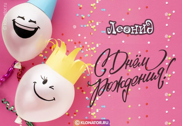 Поздравьте ваших приятелей и близких в День Рождения при помощи креативных авторских картинок с именем Леонид от медиапортала «Клонатор.ру». Можно найти понравившуюся из фантастической подборке прикольных картинок, подходящих под любой вкус и цвет. В прекрасном собрании вы скачаете открытки для детей и взрослых с именем Леонид. Любую картинку возможно скачать бесплатно на смартфон и послать имениннику, чтобы поздравить с юбилейной датой, или Днём Рождения.