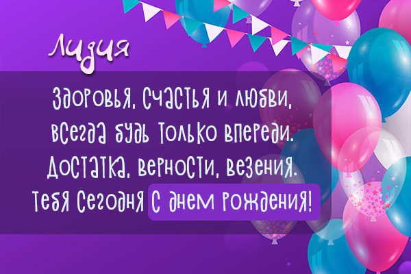 На носу Днюха лучшей подруги? Крадётся Юбилейная дата родного человека? Не тревожьтесь — на нашем сайте клонатор.ру вы обнаружите приветственные открытки с именем Лидия, которые понравятся любому человеку. Красивые и милые поздравительные открытки можно отправить всем: ребёнку, любовнице, внучке, лучшей подруге, сестре, невестке, женщине, руководителю, племяннице, однокурснице, дочке, любимой, учителю, начальнице, крёстной, девочке, тёще, тёте, любимой, свекрови, коллеге, девушке, воспитателю, приятельнице, жене. Скачайте их на телефон, или установите на форуме, или сайте — коды для вставки мы уже сделали для вас.