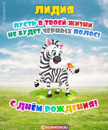 Прикольные открытки и музыкальные поздравления с именем Лидия от портала клонатор.ру можно отправить на мобильник подругам в: ватсап, телеграмм, вайбер. У нас есть картинки для поздравления с Днём Рождения и Юбилеем: тюльпанами, собачками, медвежатами, букетами цветов, котиками, поздравлениями в прозе, тортами, от Ди Каприо, мягкими игрушками, подарками, с надписями, стихами, картинки с президентом, шоколадом, розочками, с цветами, зверюшками и просто-напросто самые трогательные.