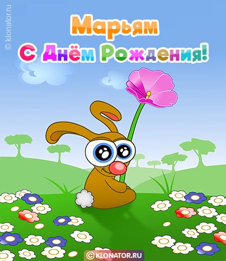 Эксклюзивные картинки и голосовые поздравления с именем Марьям от сайта клонатор.ру можно отправить на смартфон подругам в: телеграмм, ватсап, вайбер. В наличии праздничные открытки с Юбилеем и Днём Рождения: презентами, с цветами, шоколадками, с надписями, воздушными шариками, медвежатами, поздравлениями в прозе, смайликами, стихами, собаками, цветочными букетами, от Ди Каприо, картинки с президентом, тюльпанами, мягкими игрушками, розочками, тортами и просто самые остроумные.