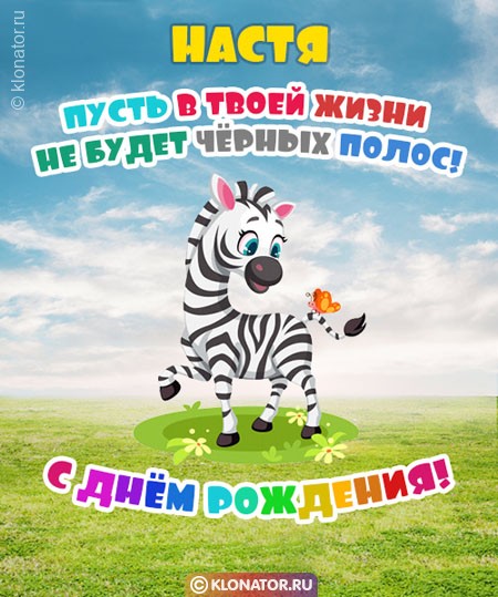 На подходе День Рождения твоей подруги? Подходит Юбилейная дата близкого человека? Не волнуйтесь — у нас на портале klonator.ru вы обнаружите торжественные картинки с именем Настя, которые прийдутся любому человеку. Наши трогательные поздравительные открытки можно отправить всем: любимой, руководительнице, ребёнку, тёще, директрисе, воспитательнице, однокласснице, любовнице, женщине, коллеге, жене, девушке, дочке, приятельнице, золовке, подруге, куме, знакомой, однокурснице, свекрови, сестре, учительнице, тёте, невестке, девочке. Отправьте их на мобильник, или разместите на форуме, или сайте — коды для вставки мы сделали для вас.