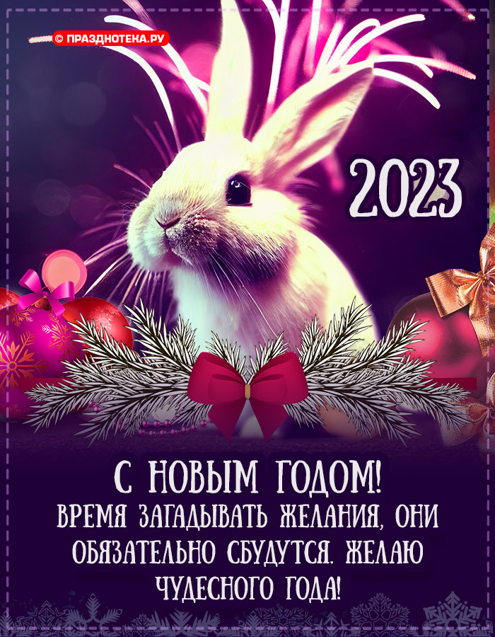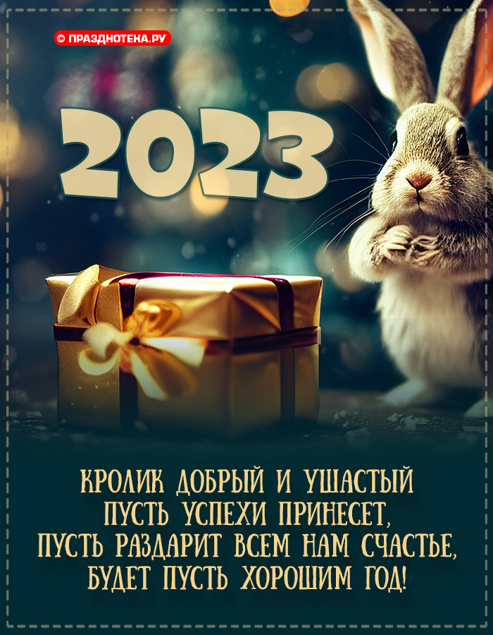 Неизбитый сборник топ новогодних открыток с символом 2023 года: кроликами и зайчиками, с пожеланиями и проникновенными словами, которые понравятся адресату какого угодно возраста в новогодние праздники. Скачивайте картинки с Новым Годом 2023 бесплатно и поднимайте настроение любимым друзьям, подругам и родственникам!