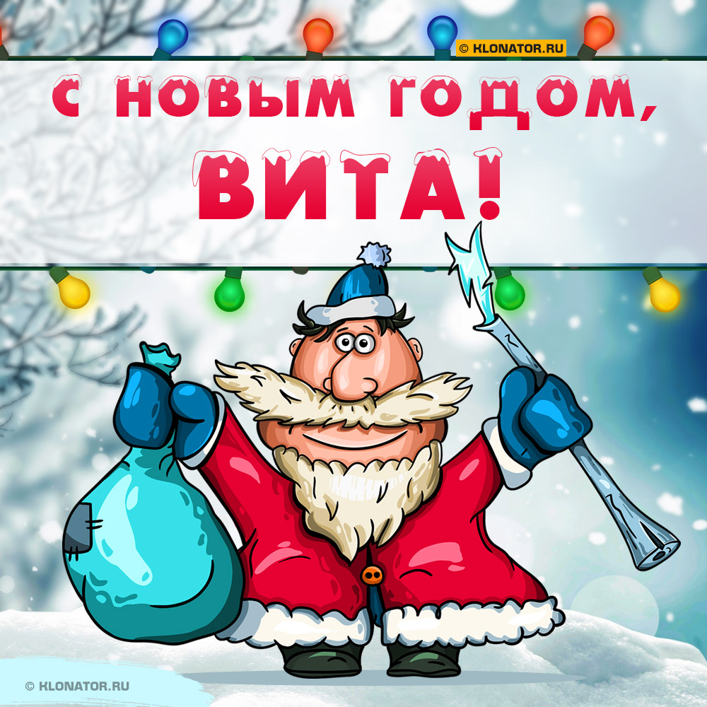 Шуточная, прикольная новогодняя открытка, с именем «Вита». Вы можете немедленно и бесплатно скачать её себе и послать адресату на мобильный. Огромная коллекция предновогодних открыток с пожеланиями, с символом 2026 года собраны здесь >>