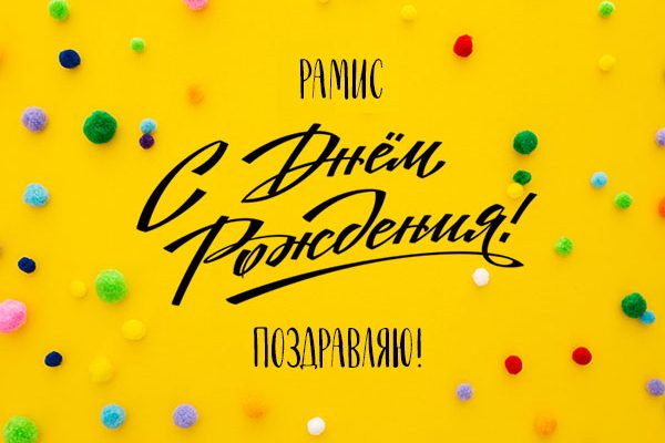 Поприветствуйте своих друзей и родных в День Рождения с помощью небанальных эксклюзивных открыток с именем Рамис от ресурса «Klonator.ru». Вы можете подобрать подходящую из свежей коллекции поздравительных картинок, которые подойдут под любой вкус и отношения. В нашем сборнике есть картинки для взрослых и детей с именем Рамис. Каждую картинку имеется возможность скачать бесплатно на телефон и презентовать имениннику, чтобы поздравить с Днём Рождения, или юбилеем.