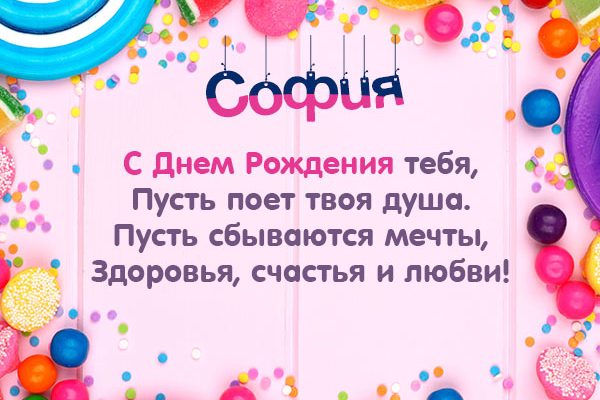 В ближайшее время День Рождения лучшей подруги? Подходит Юбилей родного человека? Не нервничайте — у нас на веб-ресурс klonator.ru вы найдете поздравительные картинки с именем София, которые понравятся любому имениннику. Наши оригинальные поздравительные открытки подойдут всем: свекрови, внучке, боссу, знакомой, воспитательнице, дочери, невестке, любимой, ребёнку, любовнице, руководительнице, тёще, однокласснице, золовке, учителю, жене, племяннице, куме, любимой, подруге, девушке, девочке, однокурснице, крёстной, приятельнице. Отправьте их на смартфон, или установите на форуме, или сайте — коды для вставки мы подготовили для вас.