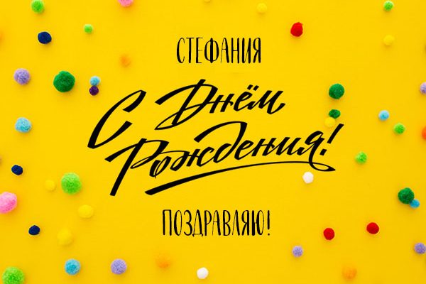 Не за горами Днюха лучшей подруги? Подкрадывается Юбилейная дата родного человека? Не беспокойтесь — на нашем веб-ресурс клонатор.ру вы обнаружите торжественные картинки с именем Стефания, которые прийдутся каждому. Наши милые поздравительные картинки подойдут всем: тёте, руководителю, любовнице, любимой, невестке, любимой, девушке, внучке, девочке, женщине, жене, свекрови, директрисе, тёще, дочери, золовке, сестрёнке, однокурснице, племяннице, ребёнку, куме, коллеге, воспитательнице, знакомой, однокласснице. Пошлите их на мобильный, или установите на форуме, или блоге — коды для вставки мы сделали для вас.