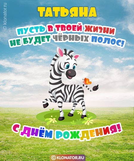 На подходе День Рождения твоей подруги? Надвигается Юбилей родного человека? Не тревожьтесь — на нашем сайте клонатор.ру вы обнаружите поздравительные открытки с именем Татьяна, которые понравятся каждому. Красивые и трогательные поздравительные открытки можно скачать всем: женщине, боссу, крёстной, преподавателю, внучке, руководителю, тёте, свекрови, девочке, дочери, любимой, тёще, коллеге, лучшей подруге, куме, любимой, ребёнку, знакомой, племяннице, сестре, воспитательнице, девушке, приятельнице, однокласснице, однокурснице. Отправьте их на смартфон, или разместите на форуме, или сайте — коды для вставки мы уже подготовили для вас.