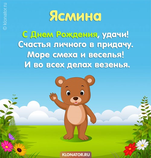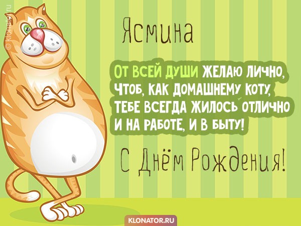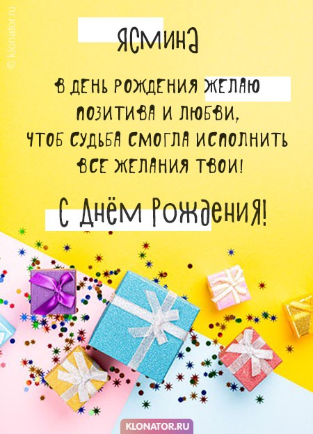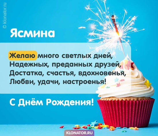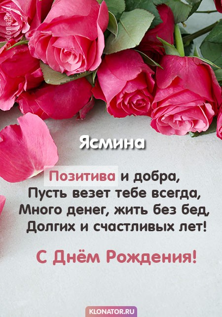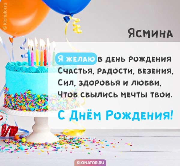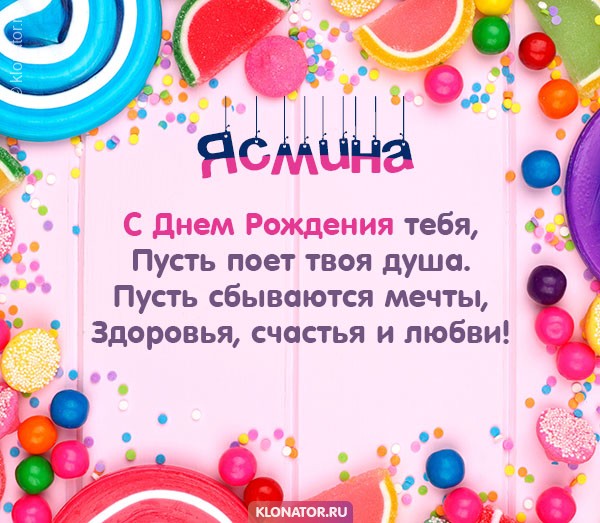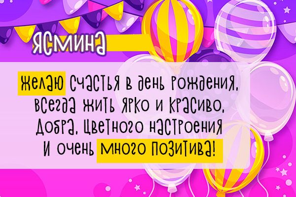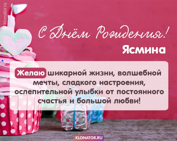 Удивите любимого человека в День Рождения с именем Ясмина открыткой от души. Разноцветные и прикольные, яркие и стильные, на нашем сайте каждый найдет уникальную открытку, соответствующую стилю именинницы. Когда адресат получит от вас открытку, это наверняка доставит огромное удовольствие, ведь это всегда очень приятно. Плюс каждую открытку можно вставить в форум, или сайт.
