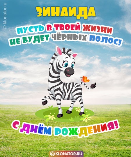 На подходе Днюха лучшей подруги? Наступает Юбилей родного человека? Не комплексуйте — на нашем веб-ресурс klonator.ru вы найдете приветственные открытки с именем Зинаида, которые придутся по вкусу каждому. Наши трогательные авторские картинки можно скачать всем: знакомой, золовке, приятельнице, ребёнку, женщине, внучке, племяннице, учителю, свекрови, лучшей подруге, девушке, девочке, однокласснице, дочери, куме, сестре, любимой, воспитательнице, жене, однокурснице, невестке, любимой, боссу, тёще, коллеге. Отправьте их на мобильный, или сделайте пост на форуме, или блоге — коды для вставки мы уже подготовили для вас.