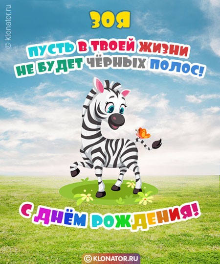 Люксовые картинки и голосовые поздравления с именем Зоя от веб-сайта Klonator.ru можно по-быстрому послать на мобильный телефон в любой мессенджер: ватсап, телеграмм, вайбер. Имеются праздничные открытки с Днём Рождения и Юбилеем: смайликами, розами, с цветами, котиками, тортиками, с надписями, медвежатами, мягкими игрушками, тюльпанами, презентами, открытки от Путина, поздравлениями в прозе, от Ди Каприо, воздушными шариками, стихами, шоколадом, собачками и конечно очень первоклассные.