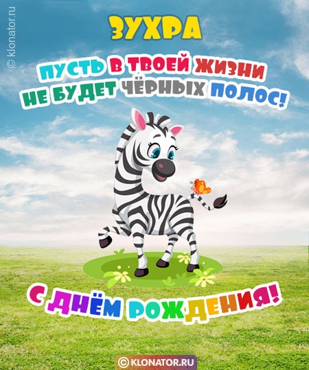 Не за горами День Рождения твоей подруги? Крадётся Юбилей родного человека? Не тревожьтесь — на нашем веб-ресурс клонатор.ру вы найдете поздравительные картинки с именем Зухра, которые придутся по вкусу любому имениннику. Красивые и оригинальные поздравительные картинки можно отправить всем: любимой, племяннице, любовнице, учительнице, приятельнице, тёще, крёстной, коллеге, женщине, свекрови, девочке, лучшей подруге, воспитателю, жене, однокурснице, золовке, девушке, любимой, знакомой, ребёнку, однокласснице, руководителю, сестре, внучке, дочери. Скачайте их на мобильник, или сделайте пост на форуме, или сайте — коды для вставки мы уже приготовили для вас.